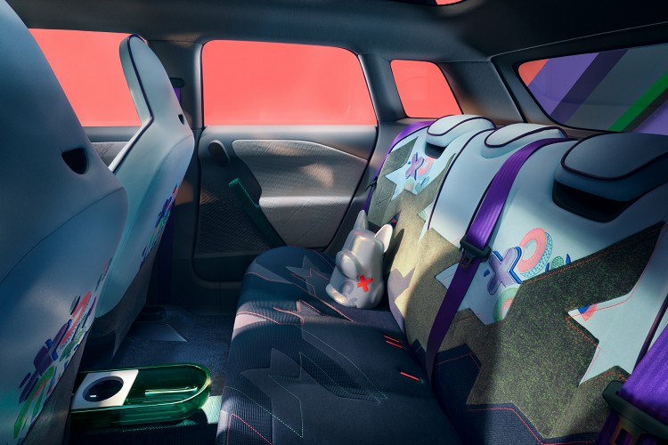 進到車內和外觀相同,保有年輕人熱血的風貌,同樣以綠色作為主要色調。材質部分看不到老氣的皮革,取而代之的是環保紡織品,如天鵝絨、編織面以及千鳥格等,以加強座艙內部紋理和視覺吸引力。內裝的主要特色是專注於視覺傳達,結合優質材料和鮮艷顏色,營早出活潑空間,數位化這塊盡可能降低使用率,只有在中控台中間位置能看到OLED螢幕。