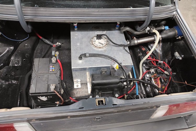 最後,為了要讓引擎能正常運作,特別在後車廂安裝訂製油箱,取代原車的供油系統,也在車身鈑件處新設計油箱蓋。這輛車目前正在德國網站www.mobile.de以49,000歐元價格出售,而在德國當地,一輛E60 M5的售價約20,000歐元到65,00歐元間,所以誰會用這價格買一輛E60 M5心臟的改裝車,心中其實充滿問號。