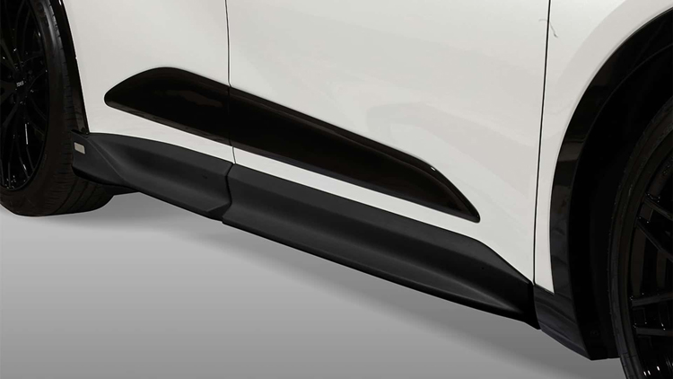 降低車身高度後帶來翻天覆地的變化,使這輛率先推出的Crown Crossover車型有點接近Sedan樣貌。除了降低底盤高度外,Tom’s還安裝一個相當壯觀的前擾流,以及粗壯、厚實的側裙和運動風格後擾流板。在後方,除了空力套件外看得到四出排氣管與上方低調中又帶殺氣的尾翼。