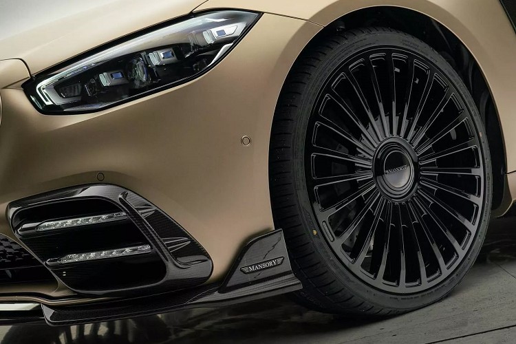 隨後,Mansory對汽車的錢飾板進行一系列改裝,其中包括安裝碳纖維進氣罩以及具備空氣力學考量的新型分流器。保桿左右兩處增加LED日行燈數量,安裝在一個黑色烤漆處理的新格柵。碳纖維飾條延伸到S 580轎車的兩側,從側裙到車尾都很看到一致風格。車尾後部同樣也進行改動,但並不過份突顯華麗感。事實上唯一改的只有碳纖維後擾流器、碳纖維擴散器以及新的排起館和Mansory 徽章。最後,鋁圈換上黑色烤漆22吋規格,以及後照鏡加上碳纖維飾蓋。