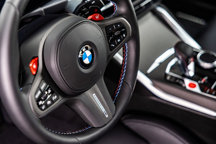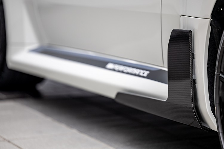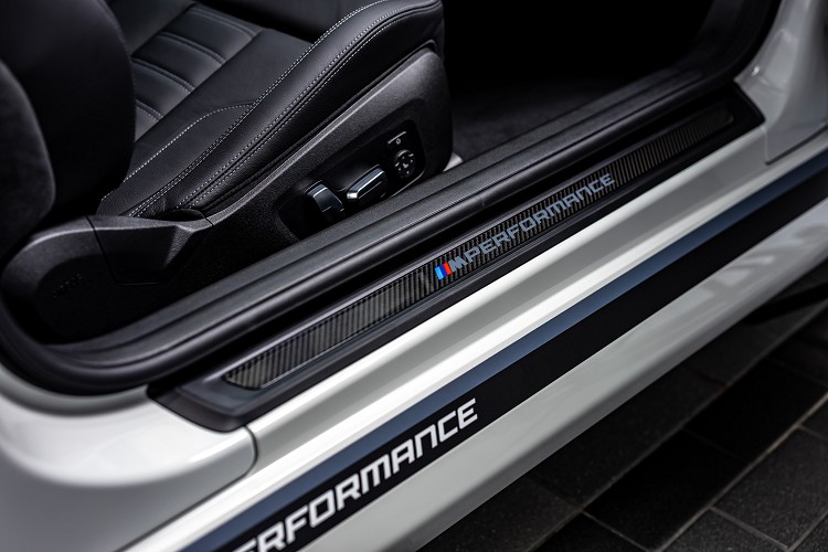 BMW M Performance加裝套件不僅為車輛量身打造出獨有的外觀造型,進入車室空間,最先映入眼簾的M Performance碳纖維迎賓門檻立即為乘客開啟令人期待的冒險旅程。M Performance碳纖維方向盤飾蓋搭配碳纖維換檔撥片組,無論是馳騁在賽道或徜徉在都會,皆大幅提升操駕手感及視覺刺激。