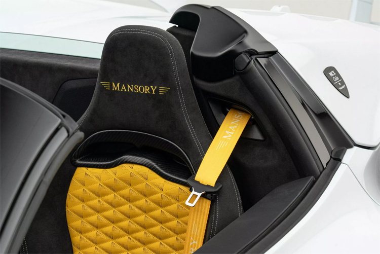 值得一提的是,這套套件也包含內裝部分,經過了Mansory的特殊設計,搭配明亮的黃色飾邊,使其內裝在黑色麂皮材質基礎上更加突出。