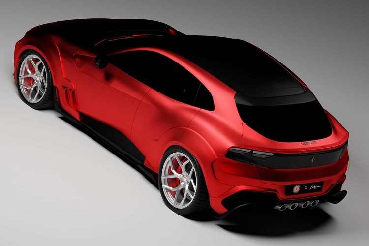 外觀方面,Purosangue特別重新設計前保桿並在側邊增加導流口,突顯出更寬闊的視覺張力。車身最有特色之處就在外擴輪拱套件,配有一對特殊的側面開孔以及側裙位置有額外鯊魚鰭造型開孔。轉移到車尾,吸引人眼球是被移到中間的四出排氣管,此舉是為了更大擾流器騰出空間。最後就是一個車頂向後延伸的擾流尾翼,雖然沒有像其它外擴輪弧或者碳纖維部品那麼顯眼,卻有著它實質效益。
