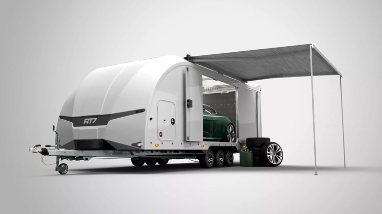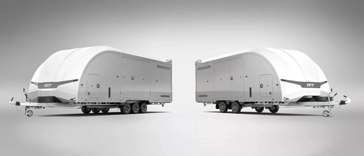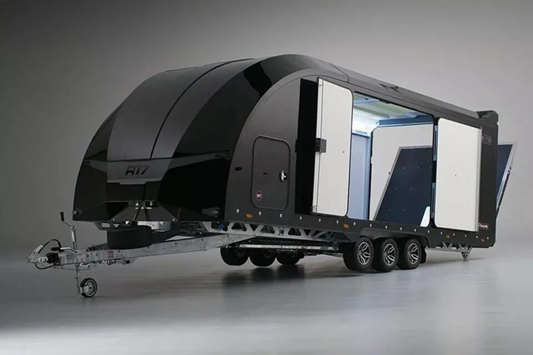這輛號稱“超高級封閉式汽車運輸拖車”被稱之為Race Transporter 7(RT7),受到高端拖曳房車啟發,擁有帥氣的外觀、優化空氣力學設計,擁有流線的前端和一體化後擾流器。拖車採用符合材料車身製造,車身大型側門則是鋁件。