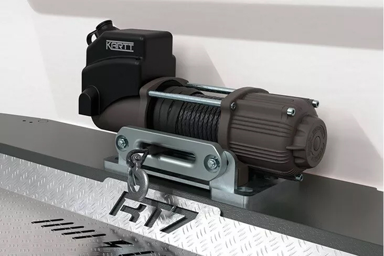 前述的電池可以通過智能手機監控,同時用於驅動電動絞盤,有助於車輛輕鬆進入拖車。電動絞盤配備合成纖維繩,可以無線控制,但並未公布絞盤可承受其重量。然而,製作公司表示將提供一款可拖曳達4,300公斤的絞盤作為選配項目。