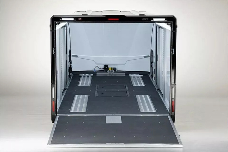 RT7的設計出發點並非好看凌駕於實用性,因為它配備了可以遠程操作控制的電動傾斜尾門。這是其能夠輕鬆上下車身高度低的車輛,同時可提供額外斜坡升級選項,更適用於賽車和超低底盤車型,兼顧各種車型上下拖車。尾門的開啟是他一大特色,後門使用動力驅動其開關,同樣可以遠程操作。打開後尾門,內部相當寬敞,採用比傳統式地板更輕、更堅固、更有抓地力的複合地板。該車型還據內部照明,可由電池或者牽引車提供電力。