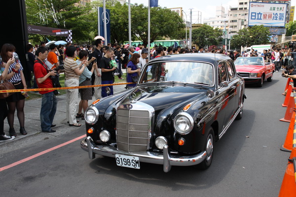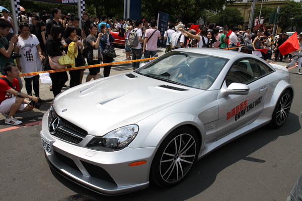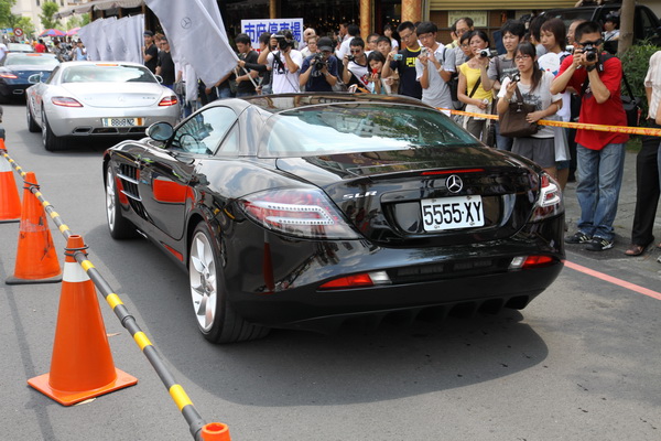 ![]() 除了提供車輛之外,今天台中街頭也可謂「星光」熠熠。因為一共70餘台的賓士車款在台中街頭進創意遊行活動。除了有歌迷精心打扮的卡卡裝加入遊行之外,這總身價10數億的車隊陣容也是相當有看頭。首先由2輛SLS AMG 打頭陣,不夠看?後面再接一台SLR夠勁吧!還不夠那麼後面還有一台寬體的SL 65 AMG以及風韻絕佳的古董車220 S。浩浩蕩蕩的車隊在繞行市政府一圈之後稍事休息,因為此時我們主角LADY GAGA已經出現在台中市政府要準備接受市鑰了。