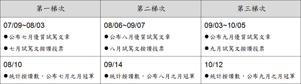 ![]() ▲福特六和與中租租車、小馬租車與AVIS國際租車合作推出免費租車體驗。(左起:福特營銷服務處行銷部處長 張景弼;小馬租車總經理 黃國財;中租迪和總經理 蔡鴻成;福特營銷處副總經理 劉繼升;AVIS國際租車董事長 彭仕邦 ;AVIS國際租車總經理 何懷洋)為了讓消費者能更加瞭解車款特點,福特六和推出一日試駕活動。自7月3日起消費者於全台福特展示中心報名並繳交保證金500元換取試車券後,便可至全省中租租車、小馬租車或是AVIS國際租車取得Fiesta四門時尚版24小時使用權,並於時間內可自由體驗駕車樂趣。 Ford於2012年公佈全新「Go Further」 品牌承諾,不僅突顯出Ford的經營理念與期許,同時也代表Ford將提供更好的產品與服務給台灣的消費者。福特六和汽車營銷處副總劉繼升表示:「為了讓消費者有更為貼近個人使用習慣的試駕經驗,福特六和與租車公司合作,推出免費體驗租車計劃,目的是讓消費者可以在沒有時間的壓力下,24小時完全自由地試駕Ford Fiesta。讓消費者更深入的瞭解車款的各項特點,並體驗到Ford更進一步的顧客服務」。 ![]() ▲消費者可至全台福特展示中心進行報名,換取Ford Fiesta四門時尚版免費體驗試車券,啟動24小時不思議夏日小旅行。![]() ▲「不思議小旅行」撰文競賽活動時程表。
