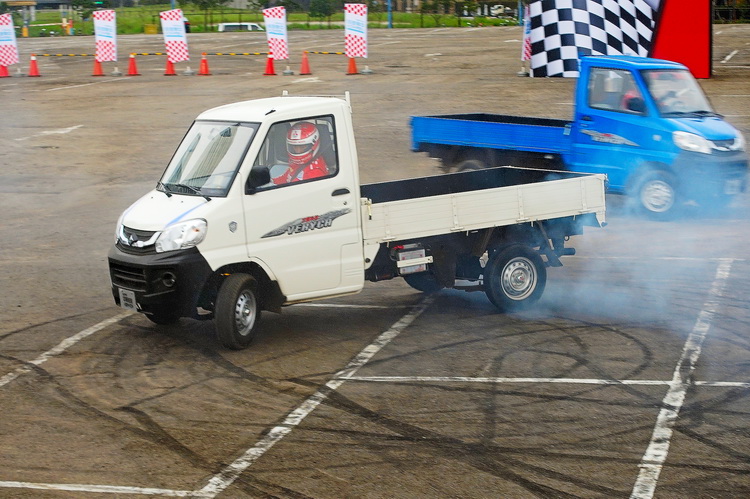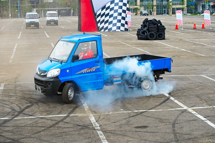 中華菱利向來以耐操品質、高CP值深獲頭家的喜愛,為展示菱利1.3L四輪驅動的操控性、搭載三菱技術4G13引擎的產品力,以及具備87PS馬力,11.4kg-m扭力,並突顯在2,500~5,000的轉速域皆可維持91%以上的最高扭力,特別舉辦「中華菱利青創俱樂部夢想出發」記者會,邀請專業車手操控菱利熱血甩尾,以後輪驅動的中華菱利臨場即可充分發揮慣性甩尾動能,完美呈現結合180度甩尾的繞錐動作;當兩輛中華菱利對開至場中央時,專業車手即可單以前輪輸出、後輪鎖定方式,精彩完成180度甩尾。