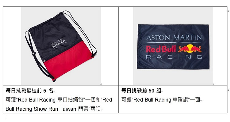 ![]() 分秒制霸!快揪神隊友一同挑戰秒速換胎~「Red Bull Pit Stop Challenge巡迴換胎挑戰」將自6/29至8/25巡迴全台,現場購買Red Bull一罐即可獲得體驗和挑戰資格,兩人一組協同合作,挑戰秒速換胎,F1賽事往往勝負的差距就是千分之一秒,平均進站換胎約需控制在3秒以下,才能分秒必爭!號召全台車迷飆速對決,每日挑戰最速前5名,即獲得“Red Bull Racing 束口抽繩包“一個,及”Red Bull Racing Show Run Taiwan 門票“兩張。更有「Red Bull Pit Stop Challenge線上換胎挑戰」線上遊戲,每日挑戰前3名可獲得”Red Bull Racing Show Run Taiwan 門票“,最速第4名至第20名,即獲得“Red Bull Racing 車隊帽”和” Red Bull Racing LOGO T Shirt”,歡迎更多車迷加入挑戰,更多資訊請至:www.redbull.com.tw/pitstop2019
