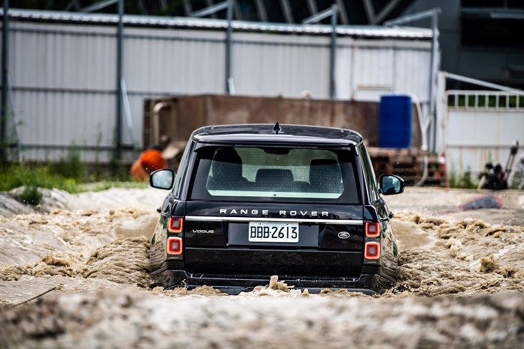 7. 涉水關卡:Land Rover獨家蚌殼式引擎蓋及進氣系統設計,讓旗下車款擁有最高900mm涉水實力,有助於穿越溪流、淺灘或淹水地形。