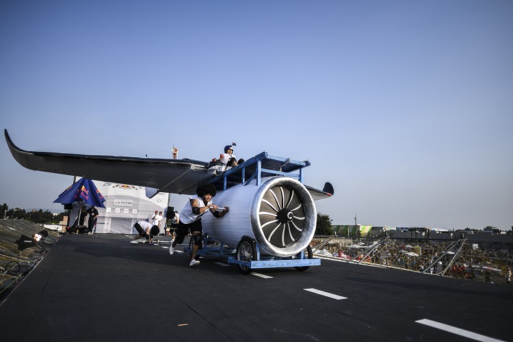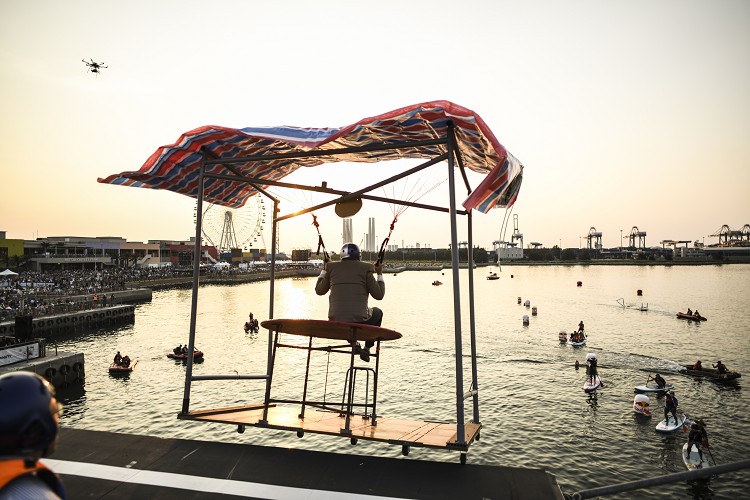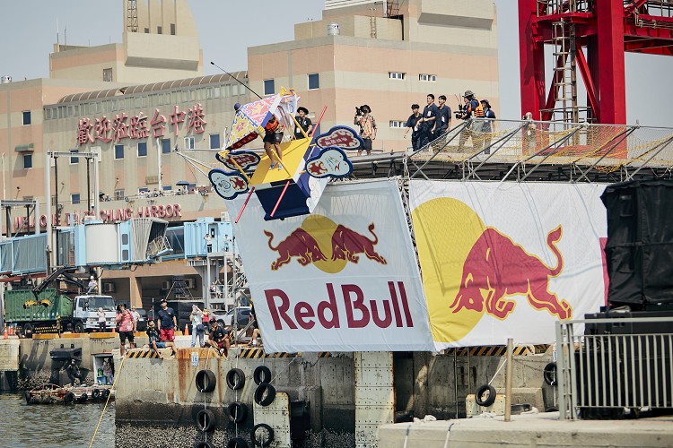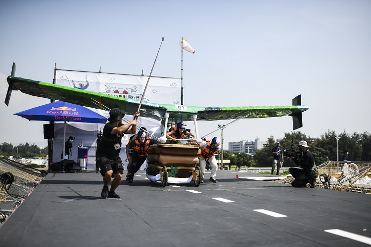 Red Bull飛行日彙集了來自全台各地的民間高手,不僅有熱愛飛行的民航機師及滑翔翼好手、更有懷抱飛行夢想的牙醫、機器人製作團隊、火箭研究員、YouTuber等等,他們發揮各自創意將常見的動物、交通工具、甚至餐盤上的食物通通都加上翅膀後成了最強飛行器,在台中港一同挑戰人類飛行的夢想,在六米高的跳台上,以天馬行空的創意展翅高飛!
