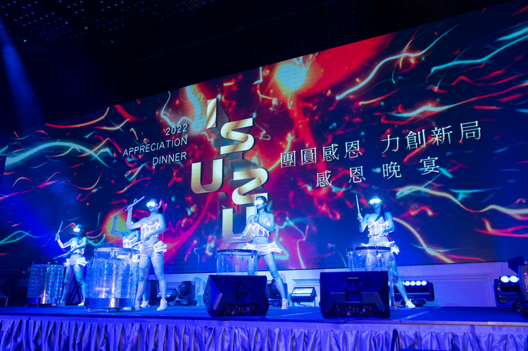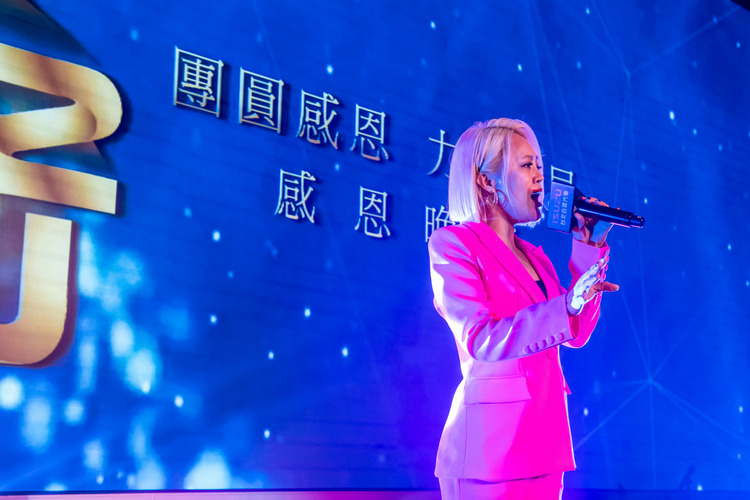 ![]() 本次感恩晚宴以金、銀、紅三色作為dress code,邀請賓客盛裝出席,並祝福賓客們在2023年可以閃亮亮、喜氣洋洋一整年。為了迎合金光璀璨的活動主題與意象,現場打造有如星光大道的奢華感受。晚宴活動由號稱「尾牙王」的唐從聖擔任主持,現場活動不間斷,有神奇的魔術表演、LED水鼓表演、爵色魅影的樂團演奏。今年壓軸貴賓「鐵肺公主」戴愛玲登場演場時,更帶起晚宴的另一波高潮。整場活動讓賓客體驗一場視覺、聽覺及味覺都絕佳飽滿饗宴。 ![]() ▲感恩晚宴由唐從聖擔任主持人,壓軸則由「鐵肺公主」戴愛玲登場演唱。