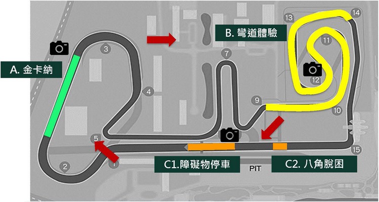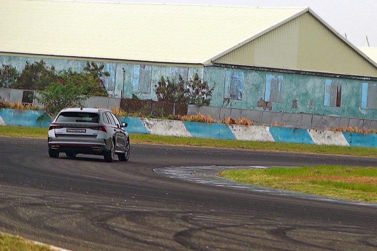 最後一道關卡則是彎道體驗,選擇賽車場內的第9至第14彎連續彎道的賽段作為挑戰舞台。這個賽段被車界人士戲稱為「大腸包小腸」,因為是在高速彎道之後接著兩個髮夾彎之後再出來接高速彎,可以說是對車身與底盤剛性、懸吊、轉向系統等都很考驗的賽段。相較於前面幾個關卡這一關應該才算是來真格的激烈操駕體驗。同樣地,每位挑戰者都可以分別試到這三部RS車款,來感受一下他們各自的特性與彼此間的差異。 Kodiaq RS雖然車重重、側傾感較其他兩台大但所搭載的DCC電子可調懸吊系統在支撐上沒什麼問題,加上車身動態穩定系統的控制基本上只要在入第十一彎之前用煞車控制好速度入彎後就很好控制整個動態,避免推頭(轉向不足)的現象,而且轉向靈活度略遜於Octavia RS的劣勢可以用四驅更佳的抓地、循跡性(代表高過彎極限)來彌補。