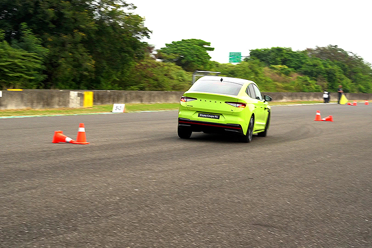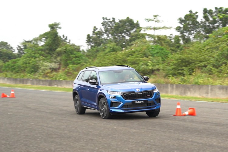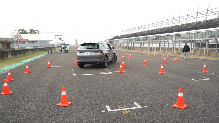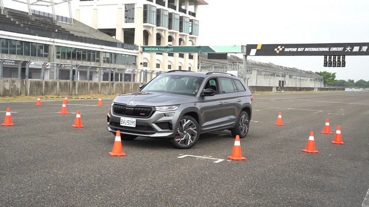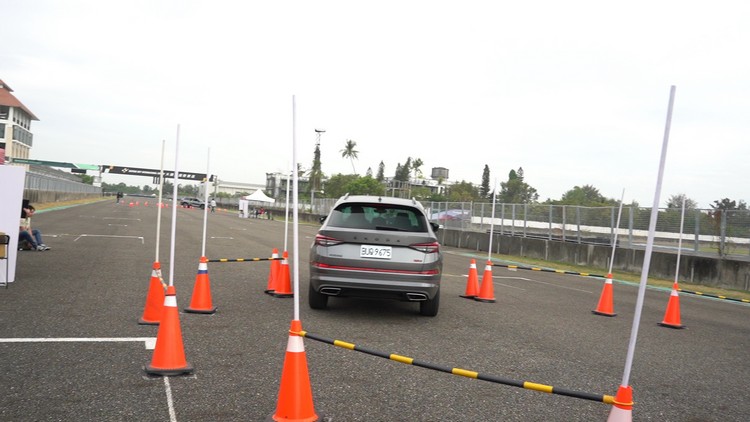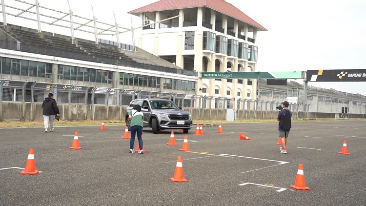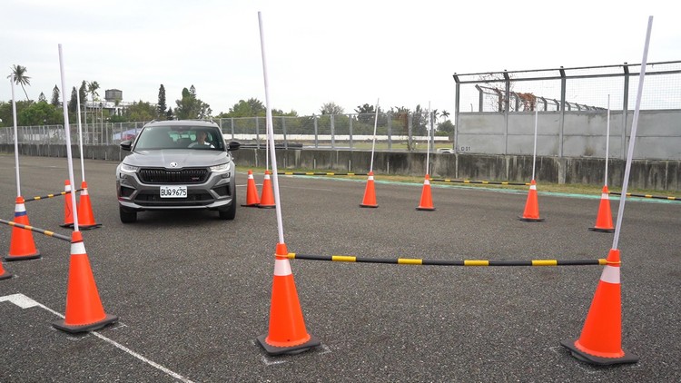 再來就是賽道活動中常見的直線繞錐關了,場地上共有八個錐筒以直線等間隔排列,媒體們再分別開三部RS車款進行繞錐。Kodiaq RS因為是車身最高的SUV,重心較高繞錐時自然自然向外偏移側傾的現象比較明顯,不過車身穩定輔助仍然很好地發揮效用,做出的時間也不會差很多。