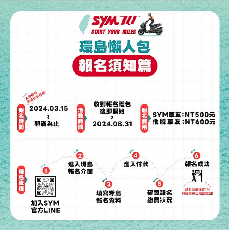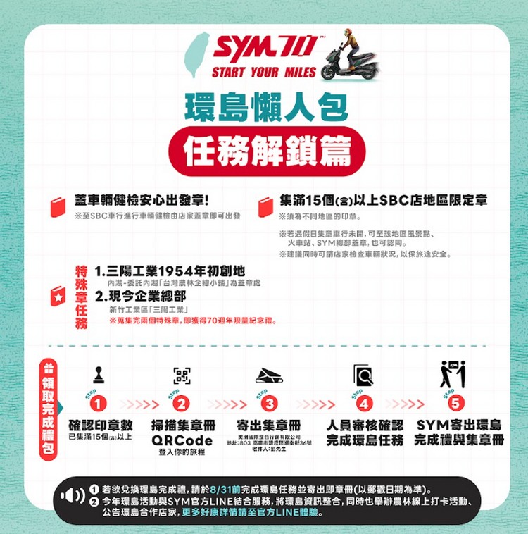 活動官網:https://tw.sym-global.com/start-your-miles/ SYM官方LINE:https://sym.lineapik.tw/st/sUYWA0