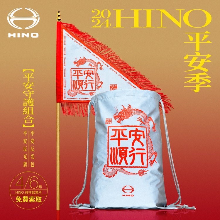 ![]() ▲HINO繞境平安守護組合,內含反光設計之「平安反光旗」及「平安反光包」
