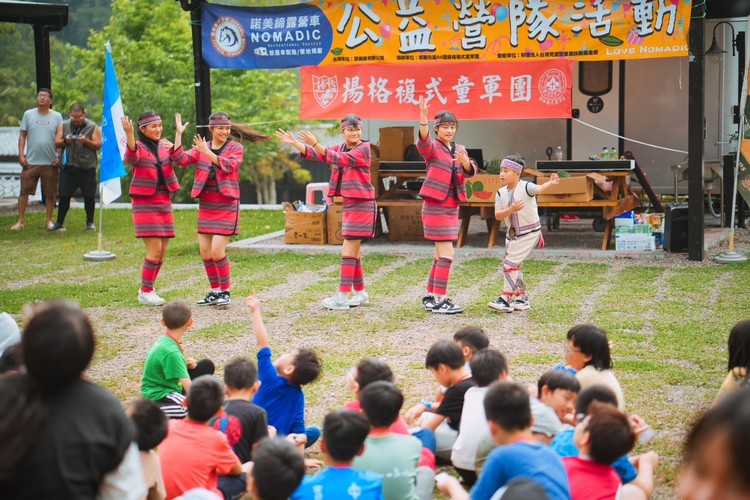 其中還有水田原住民舞蹈團帶領大家一起歡跳泰雅族特色的原住民舞蹈,還有營地業主提供的扭扭車、卡丁車、水彈槍戰的遊戲體驗,讓家扶的小朋友們渡過了相當歡樂充實的兩天一夜活動。諾美締 希望透過這一場溫暖的公益露營活動,不分你我、一起參與公益盛會,將本活動之主 題彰顯而得以正面宣導,達到拋磚引玉的效果。