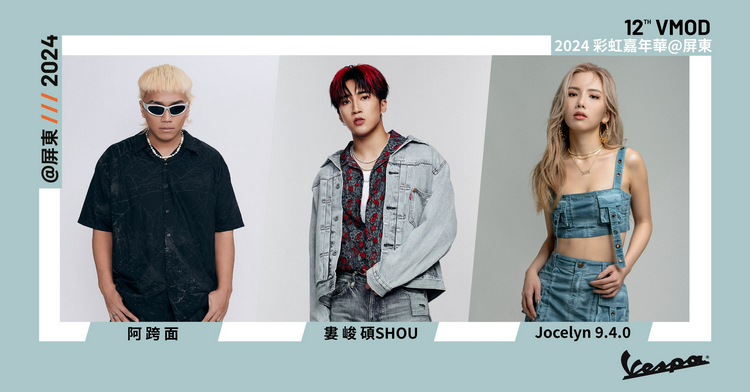 本屆彩虹嘉年華活動依舊準備了豐富精采的活動內容,除了邀請到當紅創作偶像才子婁峻碩SHOU、《大嘻哈時代2》總冠軍阿跨面、與《聲林之王3》R&B潮流女聲Jocelyn 9.4.0輪番開唱,以充滿魅力的舞台演出點燃全場熱情外,同時也安排了Vespa車隊盛裝巡遊屏東市中心,讓色彩繽紛的Vespa車輛將街頭化為最耀眼的彩虹。
