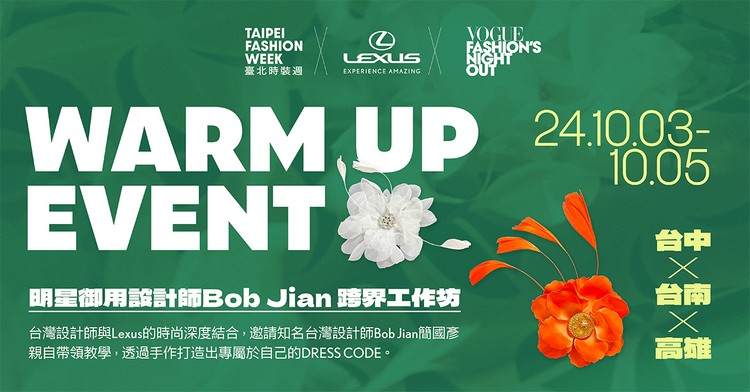 Lexus持續支持各大時尚與藝術文化活動,連續6年與臺北市政府文化局、VOGUE共同合作舉辦《2024臺北時裝週Taipei Fashion Week》及全球時尚盛事VOGUE Fashion's Night Out。活動將於10/4(五)至10/20(日) 期間串聯線上線下,為民眾帶來一系列精采的時尚活動。今年活動以「Dress Code Taipei:盛裝臺北」為主題,除了響應臺北建城140週年,更以「音樂」與「時裝」的跨界創意,展現臺北城市多元而自由的文化魅力,與Lexus的品牌精神「Experience Amazing」-持續致力於提供多元且獨一無二的驚艷生活風格不謀而合!