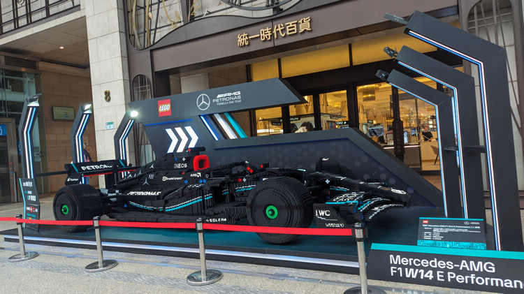 除了闖關任務,這次台灣樂高又再次將1:1比例賓士F1賽車樂高模型陳列在統一時代百貨門口,更方便賽車迷能近距離與樂高Formula 1賽車合影,感受震撼魅力!而在2F現場還特別設立Formula 1完整10支車隊介紹區,帶領玩家深入探索頂尖車隊的輝煌歷史與精彩故事;不僅如此,更能親眼見證倍耐力五色輪胎展示區,了解Formula 1 賽車在不同賽道條件下的最佳輪胎選擇與戰術策略。