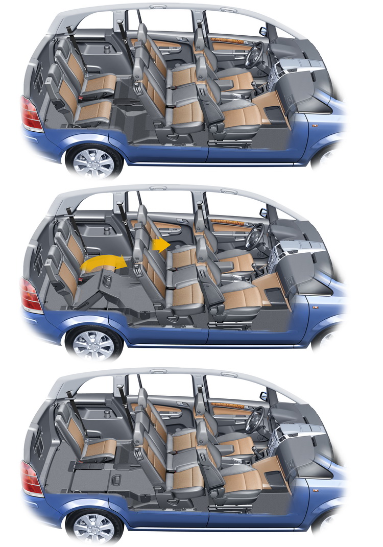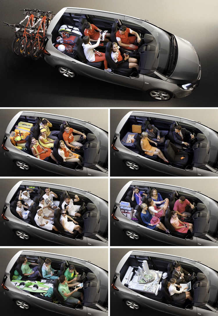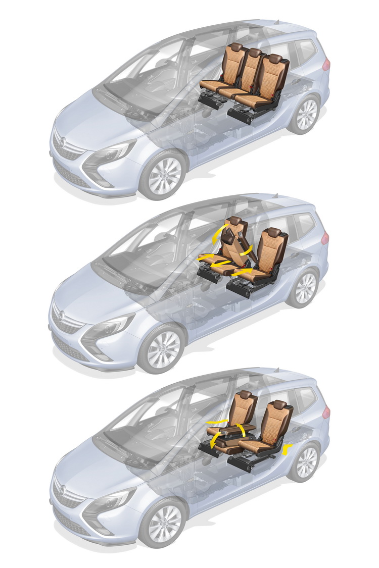Zafira Tourer再添新進化而在2011年所推出的Zafira Tourer之上, Flex7有了新進化,除了保留第三排座椅的放倒機能外,第二排座椅則從一體式長椅改為獨立座椅,可前後滑移210mm的距離,且同樣可以向前翻折,創造出更大(1860公升)且完全平坦的行李收納空間。