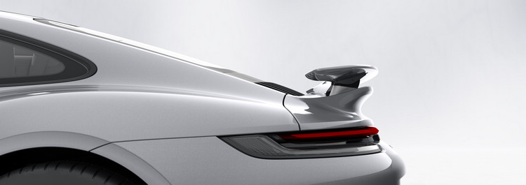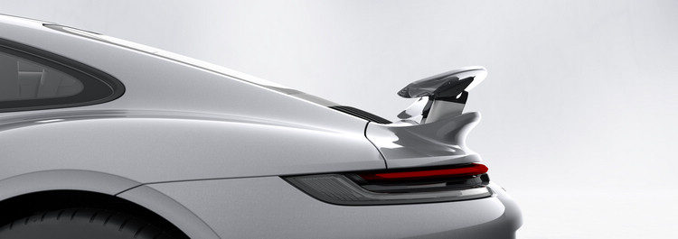 尾翼採用輕量化結構:具備獨特的Turbo專屬造型設計,較前代車型除重量減輕440克,可提供空氣力學表現的有效面積則增加8%,尾翼的基礎構造是由發泡材質及鍛造嵌件組成,上層運用雙向CFRP強化纖維,下層則由單層玻璃三向GFRP纖維強化塑料組成。尾翼具備可伸展和傾斜角度的電動調整功能-主要取決於速度和所選擇的駕駛模式。