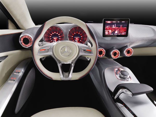 ![]() 從Concept A-Class可以發現到,這一代A-Class將會從一代和二代那種挑高車頂的「MPV」風格,一舉改為類似BMW 1 Series、AUDI A3這類車高較低、運動風格較重的車型。三門掀背的車身、渾身的波浪般起伏線條、長車頭車身輪廓與面積縮小的擋風玻璃等特色也都說明了這個事實。