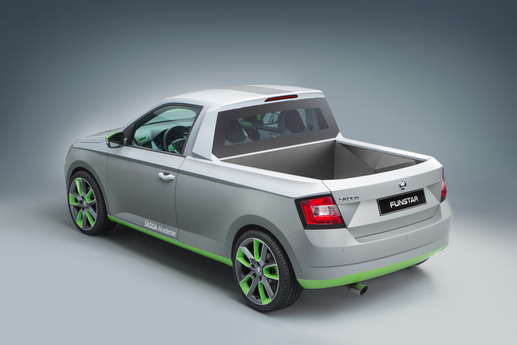 SKODA所展示的這部Funstar是由23位SKODA的培訓實習生團隊所共同完成的作品,在SKODA設計與生產部門的緊密協助配合之下完成這部單一車款,他們以Fabia作為基礎,再讓車尾從原本的掀背形式改為多出一截貨的小型貨卡台形式,