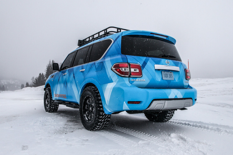Armada Snow Patrol![]() 另一款雪地主題的展示車Armada Snow Patrol,是一部換上升高懸吊組件的特製車,並且僅此一輛。它所裝配的輪胎尺寸是35x12.5R20的Pro Comp MT2,車頭還能看到加裝一組Smittybilt製造的厚實防撞桿,用以保護水箱和車體,上面並且安裝了便於脫困救援的12,000磅鉸盤,同時也為了惡劣天候新增五吋LED賽車強光組和LED燈條,此外,車側和車頂還可以看到側踏板和車頂架。
