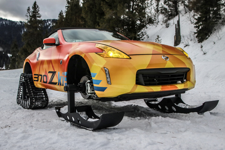 370Zki![]() Nissan所推出的這兩款車正好迎合美國東岸暴雪的現況,其中370Zki為了能夠輕鬆應付厚達數尺的積雪,特別將前後軸都換上雪橇和履帶,不過為了容納這些組件,也必須將傳動和懸吊結構大幅修改。