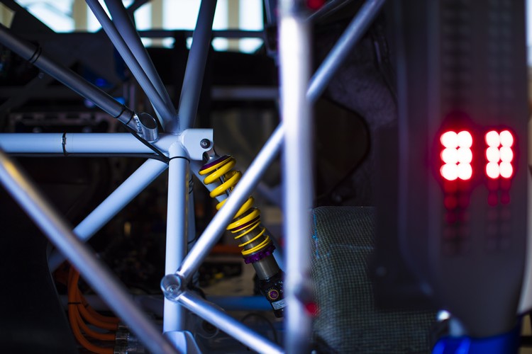 ![]() 車內搭載Ford自行開發的水冷式50kWh電池組,安裝位置並考量最佳車身配重及低重心,根據原廠說法,透過標準快充設備大約45分鐘可以充滿,車內觸控螢幕也會顯示充電狀況。四組馬達負責驅動四個車輪,合計約可爆發2000ps馬力輸出,足以供應2秒內完成0-100km/h加速所需動能,使其成為Ford有史以來最強的SuperVan。