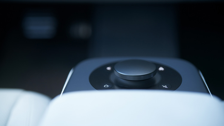 同樣地,車室也強調包覆圍繞的感覺讓乘客有更多的舒適感。車室內裝都採用對環境衝擊較低的材質以及可以淨化車內空氣的纖維材質。前方控台是一整片的環繞顯示螢幕,方向還做了相應的特別設計避免遮擋到螢幕。