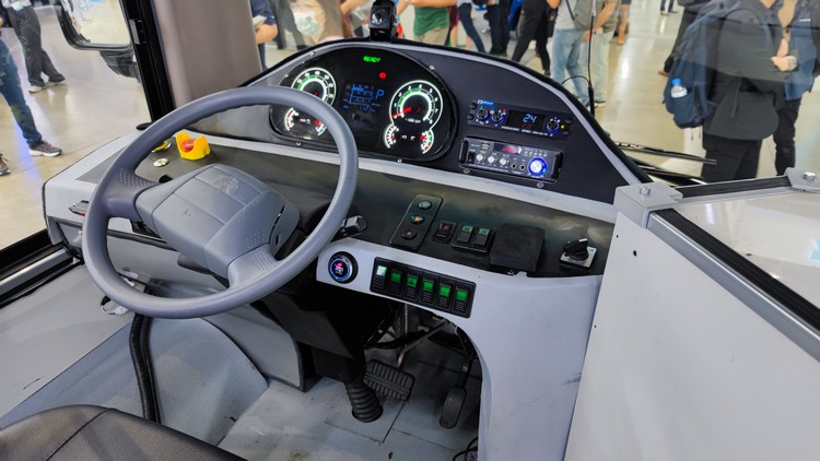 ![]() ▲量產型智慧線控小巴—國内首創自動駕驶巴士於國家森林游樂區進行自駕驶驳服務,成功挑载山坡地形,森林高遮蔽路段、小型動物·等特殊地型與情境。定位系统突破惯用之RTK定位系统,探用合式定位秸合SLAM定位技,结合ADS相關技術,具備高階智慧系統與高度安全防護機制。整車為台灣设汁與製造,包括線控底盤、動力控制、自駕系統、電池…等為目前台灣MIT比例最高之智駕巴士。