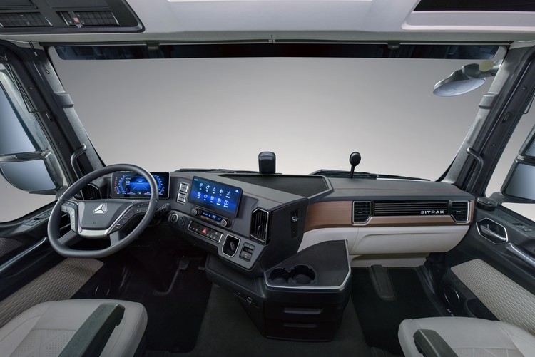 您能想像開車也可以像在家一樣舒適嗎?SITRAK最新推出的旗艦版曳引車,駕駛艙採高規格設計,不僅有舒適具懸吊、加熱功能的座椅,後座設有上、下層雙臥鋪,加強車內隔音設備,提供如居家環境般的舒適空間。人性化的設計,提升駕駛便利,在操縱性方面,配備12.3吋大液晶螢幕,觸控靈敏、操作滑順,所有車上設備只要輕觸即可完成設定。方向盤下方設置智慧排檔桿,操作便利、優化空間。