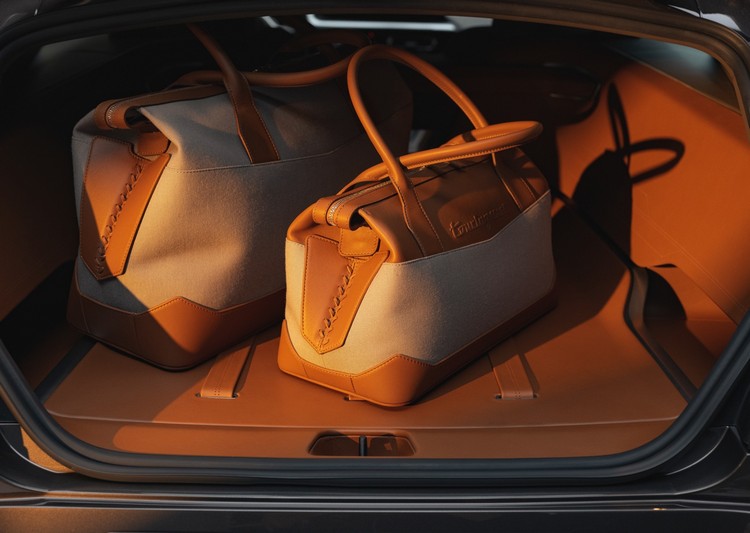 車室內,以義大利皮革工作坊 Poltrona Frau的雙色調皮革佈局來鋪陳前方控台與車門。而在細部做工上,精確的打孔與座椅底部及座椅的編織皮革內飾都突顯了義大利工匠特色將最高水平的傳統工藝與現代設計原則相結合。另一個例子則是由歷史悠久的 Schedoni皮革工作坊專為此車所訂製設計的行李箱,全套包含了兩大行李箱、一旅行袋與一個服裝袋來與車子完美搭配。