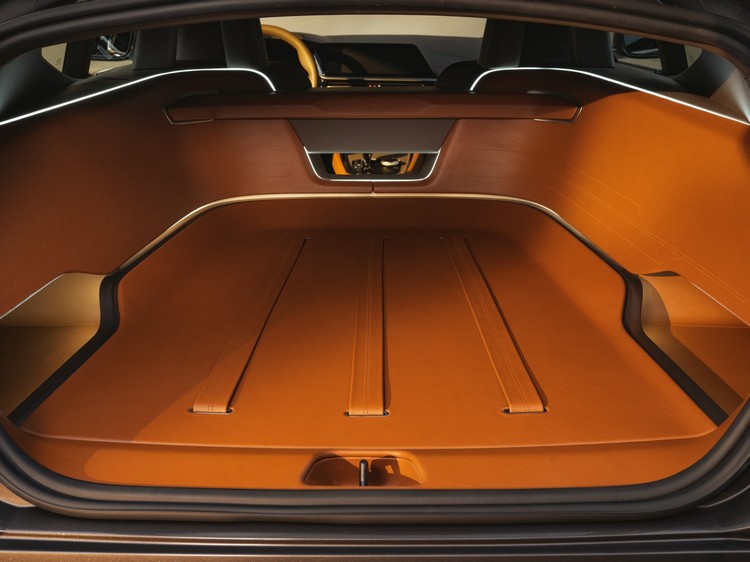 車側很明確展示出獵跑車的輪廓,伸長的引擎蓋、流線型的車頂線條與厚實的車尾構成獨特的雙廂式車體。車頭配置了有銀銅飾件與直立柵葉的特別版腎形水箱罩。腳上則是前20吋、後21吋20輻專用鋁圈。Sparkling Lario車色也是專為這部概念車所設計,嵌有藍色玻璃薄片的灰褐色調營造出獨特的深度感。