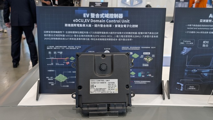 自主研發電動車快充控制器(EVCC)已通過CNS測試,創下台灣首例! 因應智慧化趨勢,ET35與Tesla等國際電動車大廠同步,電子電氣架構 (Electronical/Electric Architecture, EEA)採用集中式架構控制器,並使用中華汽車自主研發的「域控制器(eDCU)」,整合車輛控制單元(VCU)、電池管理單元(BMU)、 汽車警示音系統(AVAS)與物聯網系統(IoT)等功能,降低系統複雜度,提升整合效率與功能彈性。ET35實現全電子化控制,包含電子油門、電子煞車、電子轉向等,提升操控靈敏度與能源效率。