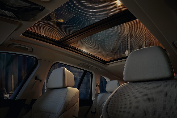 以簡潔俐落的現代美學為主軸,搭配Vernasca真皮座椅與楊木飾板等頂級材質,為全新世代BMW X5量身打造令人陶醉的豪華雋永座艙。白天透過面積加大30%的全景電動玻璃天窗納進溫暖的陽光,車室更加開闊明亮,入夜後則能藉由絢麗的迎賓光毯及客製化的環艙氣氛燈渲染愜意放鬆的氛圍,融合鑲嵌於Sky Lounge全景天窗上的15,000顆LED光點,在車內營造出繁星點點的迷人星空。