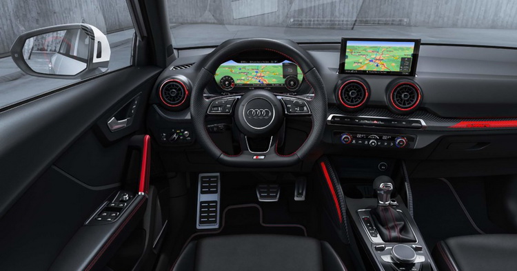 內裝則在頂篷、車柱與座椅部分採用黑色調處理,中控台等處則可看到霧面鋁合金材質的飾板。駕駛座下方則有不鏽鋼材質油門/煞車/休息踏板。座椅標配真皮與織布混搭材質,也可以選配真皮搭Alcantara類麂皮材質或Nappa高級真皮。