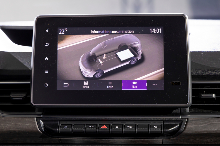 系統共有六種駕駛模式,Eco模式會將最大馬力限制在76hp,極速也被限制於110km/h來求取最好的續航能力。車內可選配十吋數位儀錶顯示幕,可顯示的資訊項目包括駕駛模式、電力管理、駕駛輔助系統運作等,畫面配置也可以自訂。