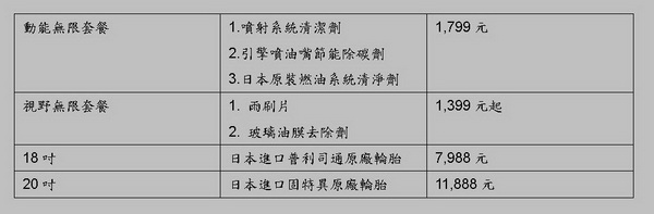 ![]() INFINITI 2013「行春․行運」服務活動,除了提供三大系統32項免費檢查外,同時加贈價值新台幣1,500元的免費煞車保養服務,更提供全車系「動能無限套餐」及「視野無限套餐」等超值保養套餐,另有來令片、碟盤及煞車油9折及電瓶85折起優惠;此外,限量推出2003~2008年式INFINITI FX35保養零件9折及18吋與20吋原廠輪胎感心回饋價(註2)。當日單筆消費滿新台幣3,000元(含)以上者,更可獲贈限量INFINITI專屬贈品。