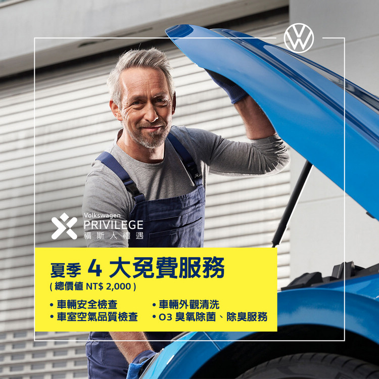 ![]() ▲自6月1日至 7 月 31 日止,台灣福斯汽車夏季健檢沁涼展開,車主回廠即享 4 大免費服務,福斯人禮遇計畫會員獨享指定原廠耗材、冷氣零件、煞車盤/來令片、抗敏防螨粉塵濾網等75折起。台灣福斯汽車總裁 Steffen Knapp 表示:「Volkswagen 秉持著 Love Brand 的品牌精神,注重車主全方位擁車感受,專注於提供車主最便利又愉悅的顧客體驗,因此,在夏日豔陽出遊旺季,台灣福斯汽車推出夏季健檢活動,為車主做好萬全準備,貼心提醒車主享受陽光明媚同時,別忘了回廠健檢,隨時保持舒適無憂的駕駛感受。」自6月1日至 7 月 31 日止,夏季健檢活動推出涼夏4大免費服務,包括車輛安全檢查、車室空氣品質檢測、O3臭氧除菌/除臭和車輛外觀清潔項目。同時,福斯人禮遇計畫會員獨享指定原廠耗材、冷氣零件、煞車盤/來令片、抗敏防螨粉塵濾網及原廠電瓶75折起,原廠電瓶還可享業界最長三年保固,帶給車主平安舒爽的夏日時光。