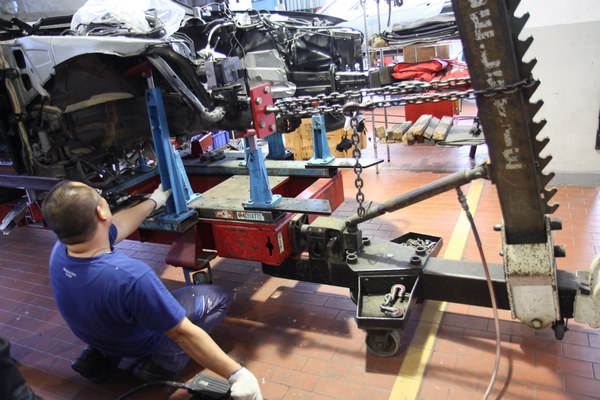 ![]() ▲由於現代化的車已經和電腦系統脫離不了關係,因此技師都必須接受相關電腦系統的操作訓練。![]() ▲關於鋁合金結構如何進行維修,原廠特別以SLK讓技師實際操作。![]() ▲負責經銷商訓練與認證的盛業琤經理表示,原廠維修技術水準的確保,是提供良好車輛品質的保證。