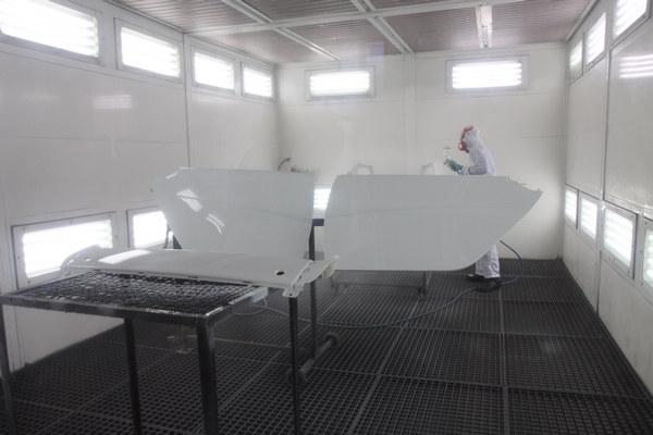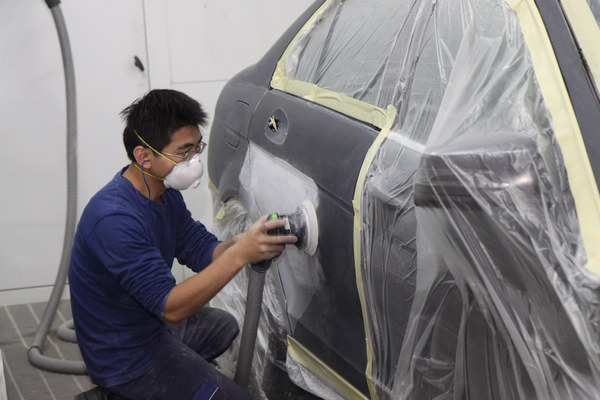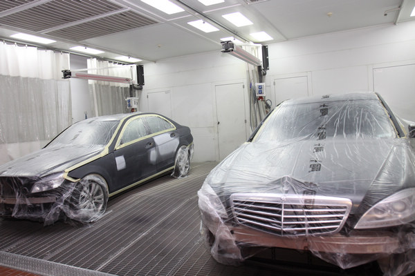 ![]() ▲在動力測試實驗室中,準備了各型引擎作為教材,包括高性能AMG引擎,獲得認證資格的技師都有維修的能力。![]() ▲鈑噴是一般維修廠最常見的設備,但在賓士的要求下,更注重通風及車身保護的措施。