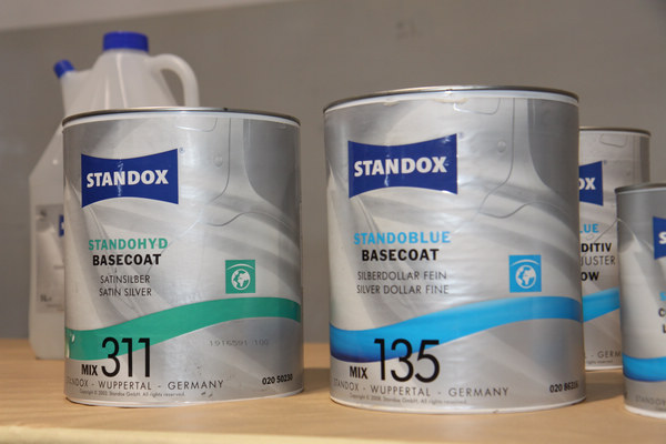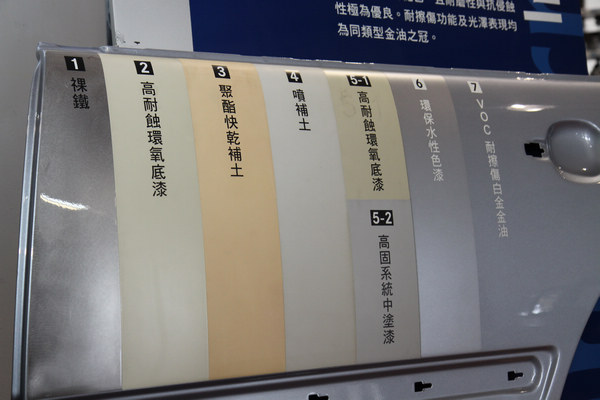 ![]() ▲按照標準程序,必須將沒有施工的部位以塑膠套包覆,才能進行施工。![]() ▲原廠烤漆塗層有規定的程序及工法,防鏽處理不能馬虎。![]() ▲色卡的差異必須經由專業技師判斷,同時由電腦選色的漆料上色。![]() ▲左邊的第二代水性漆已經升級為右邊的第三代,少了摻水調合的程序,漆料會比較黏稠。![]() ▲一系列色漆編號排序,電腦會列出所需的成份,只需要挑出來依照規定比例混合即可。