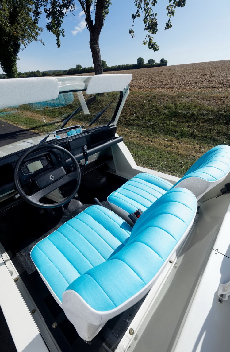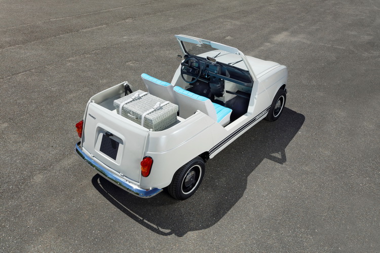 而於1960年代開發的4L Plein Air就是從雷諾四號所衍生出來的敞篷車款。不但敞篷,連車門都沒有,車頂的軟篷也是拆裝容易的設計,相當地豪爽。這次RENAULT所展出的e-PLEIN AIR電動概念車就是以現代的電動化技術讓4L Plein Air重現於車壇。