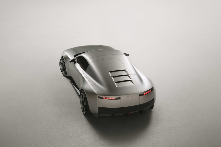 外觀設計方面,Concept C 延續 Bauhaus 精神,運用清晰幾何與純粹線條,呈現簡潔而強烈的存在感。車頭的「垂直框架」造型靈感來自 1936 年 Auto Union Type C 賽車,同時呼應第三代 Audi A6 的經典設計。前後燈組以四條水平光帶作為識別符號,將成為未來車型的重要家族化元素。整體車身輪廓俐落簡潔,搭載電動硬頂敞篷結構,兼顧優雅與駕馭樂趣,並以「鈦色」烤漆彰顯科技感與精緻氣質。