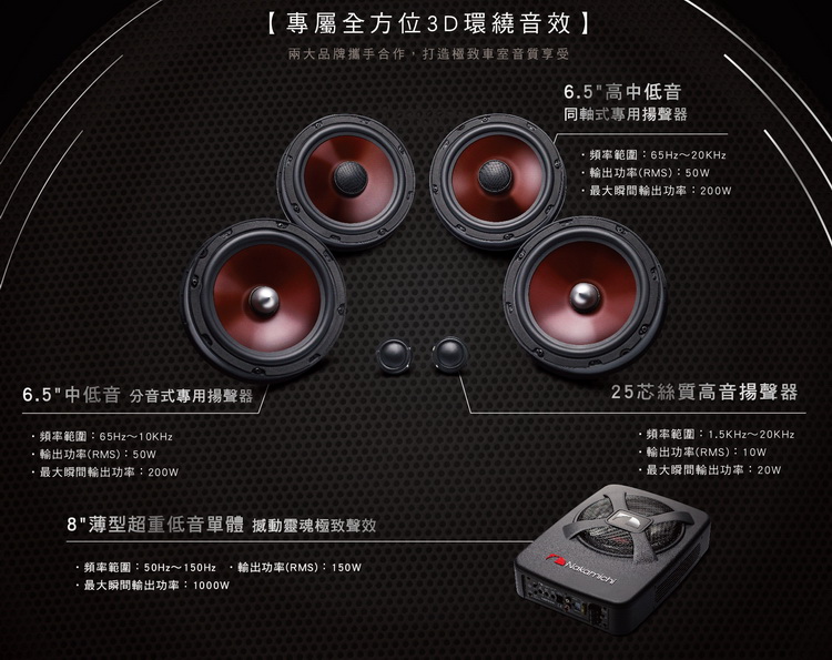 ![]() 創立超過半世紀的Nakamichi音響,素以”原音重現、細膩音質優化”等特色享譽盛名,其設計的車用音響更是許多車主升級首選的夢幻音響。此次汽車與音響領域的雙強跨界合作推出聯名版,為ix35車艙內精準調教專業級音源配置,分別在前座4顆分音式(A柱鏡座是高音揚聲器、前車門為中、低音分離揚聲器)、後座2顆同軸式(後車門)與1顆重低音單體(副駕駛座下)三組組合下,堆疊出車艙內最佳立體環繞音效,讓開車也能徜徉在Jazz in Paris層次分明的原音旋律裡。
