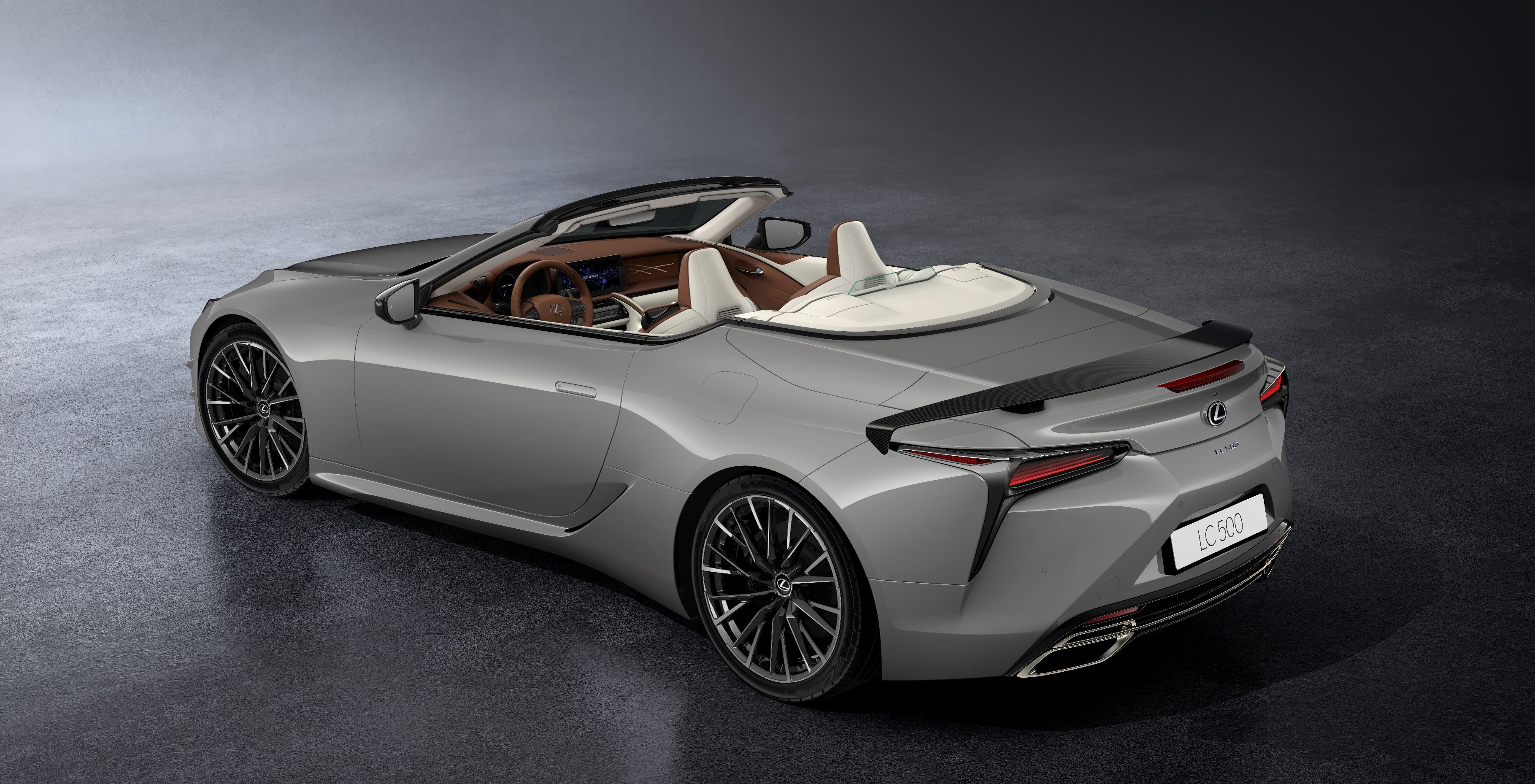 此次LC Final Edition專屬車色與細節配置,更彰顯其收藏級定位,LC 500全新外觀色「朧銀灰」靈感源自日本金屬鍛造工藝的「朧銀(Oborogin)」,金屬色澤搭配霧面透明塗層,隨光線流轉展現深邃層次;LC 500 Convertible則以「銀曜灰」車身搭配紋理棕軟頂敞篷,頂蓬隨著光線變化展現不同層次,優雅描繪出時間流轉的光影變化,呈現低調而優雅的非凡氣質。運用匠心車色搭配專屬輪圈與黑化外觀細節,使整體造型在優雅與力量之間取得完美平衡,展現LC Final Edition的獨特藝術風格。